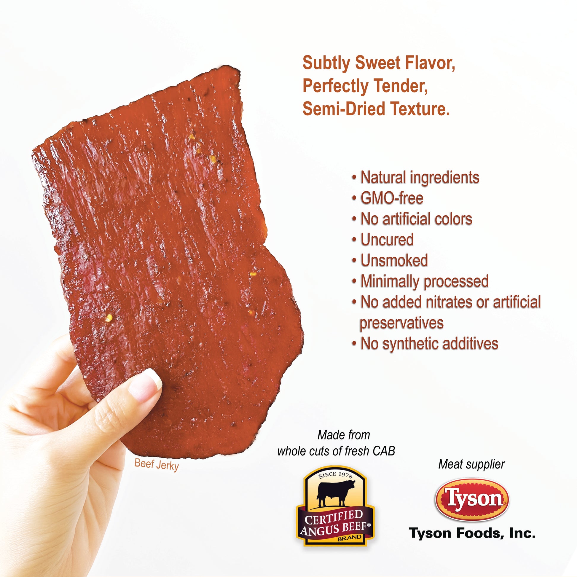 - 原味牛肉干精选优质Prime 级(CAB认证)级安格斯牛肉的精瘦部位精制而成